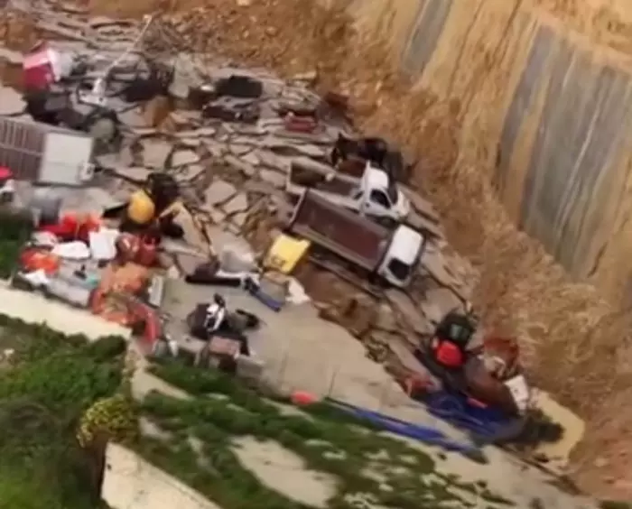 للتربة في سقوط عشرات المنازل دفعة واحدة، في مشهد صادم لم تتضح بعد حصيلته