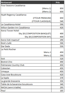 نشطاء تداولوا لائحة الأسعار التي أعلنت عنها فنادق و مطاعم شهيرة بالدارالبيضاء ، والتي وصلت إلى 850 درهم للشخص الواحد في أحد الفنادق.